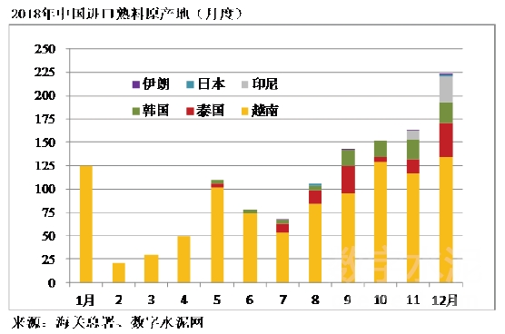 3、熟料進(jìn)口量來(lái)源國主要來(lái)自越南、泰國和韓國