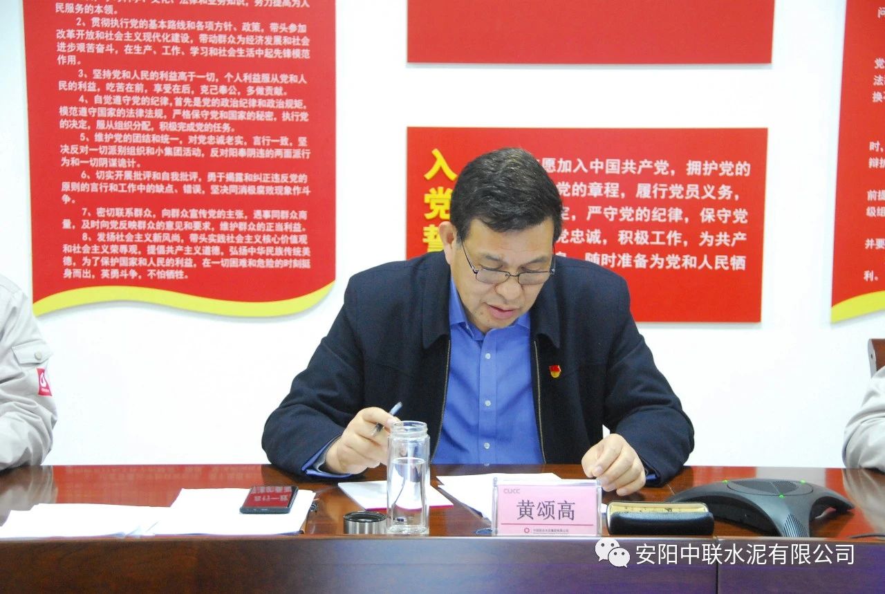 最后,黃頌高代表領(lǐng)導班子作表態(tài)發(fā)言。黃頌高表示,安陽(yáng)中聯(lián)將在中國聯(lián)合水泥、河南運營(yíng)管理區的正確領(lǐng)導下,以此次民主生活會(huì )為契機,緊緊圍繞中國聯(lián)合水泥下達的年度目標任務(wù)和政治巡視整改工作安排,著(zhù)力謀劃好公司黨的建設和“水泥+”一體化經(jīng)營(yíng)發(fā)展大計,加強科學(xué)謀劃,深化改革創(chuàng )新,搶抓機遇,堅定信心,迎難而上,確保全年各項目標任務(wù)如期完成,以?xún)?yōu)異的成績(jì)迎接建黨100周年。
