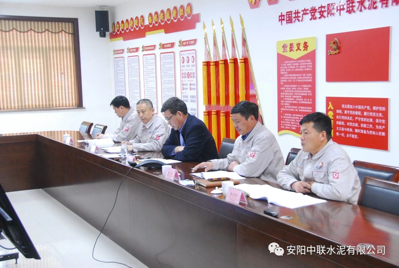 按照中國聯(lián)合水泥黨委關(guān)于認真開(kāi)好2020年度民主生活會(huì )通知要求,2月24日上午,安陽(yáng)中聯(lián)2020年度黨員領(lǐng)導班子民主生活會(huì )在公司黨員活動(dòng)室召開(kāi)。中國建材股份黨委常委、執行董事、副總裁,中國聯(lián)合水泥黨委書(shū)記、董事長(cháng)崔星太通過(guò)視頻連線(xiàn)督導會(huì )議并作點(diǎn)評講話(huà)。中國聯(lián)合水泥黨群工作部主任侯萍、紀檢監察室副主任董治及安陽(yáng)中聯(lián)黨委委員、領(lǐng)導班子成員參加會(huì )議。安陽(yáng)中聯(lián)黨委書(shū)記、總經(jīng)理黃頌高主持會(huì )議。
